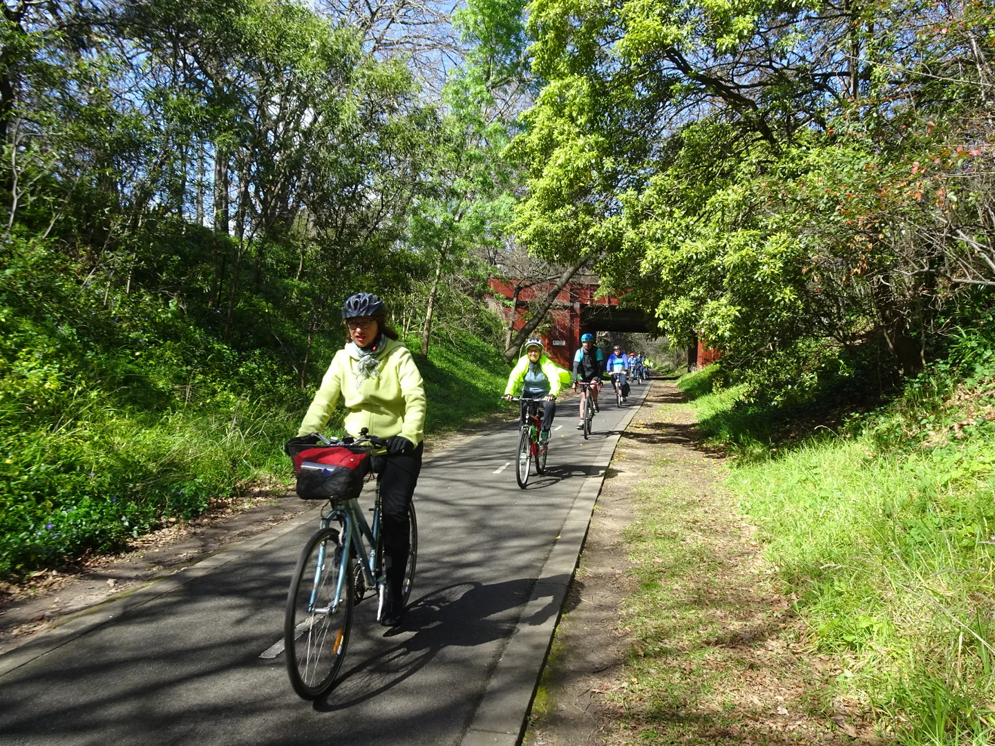 This ride follows the route of the long-defunct Outer Circle railway line through parkland in Melbourne’s leafy eastern suburbs, before dropping down to continue through bushland along the Yarra River and a short stretch of mostly very quiet suburban streets to the famous Fairfield Boathouse café on the banks of the river. It continues through parkland and quiet suburban streets to finish at Clifton Hill railway station.